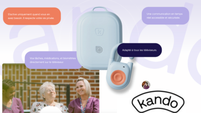 Créée avec les soignants, pour les soignants, Kando automatise et simplifie les tâches administratives, libère du temps pour ce qui compte vraiment. C’est une solution tout-en-un (hardware, software et IA) simple, facile et efficace qui permet de simplifier la gestion et le don de soins en résidence. Ce projet a été élu lauréat dans la catégorie Nouvelles Technologies des Trophées SilverEco Bien-Vieillir.