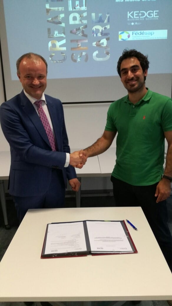 KEDGE Business School et la Fédération Française des Services à la Personne et de Proximité (Fédésap) ont officiellement signé un partenariat le 12 juin 2017 à Marseille, et annoncé le lancement du Mastère Spécialisé Management des Structures d’Action Sociale et de Santé (MSAS) adapté spécifiquement aux opérateurs de Services à la Personne (SAP) et d’Aide et d’Accompagnement à Domicile (SAAD).