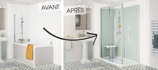 Toute équipée (siège, barres, douchette à main aimantée, main courante), cette solution viendra remplacer votre ancienne et limitera ainsi les risques de chute dans votre salle de bain.