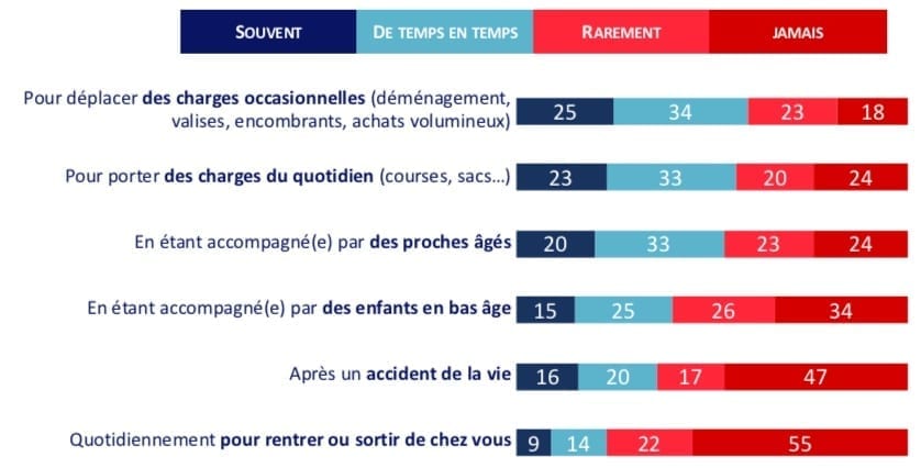 - 59% pour déplacer des charges occasionnelles (déménagement, encombrants, objets volumineux, valises…)