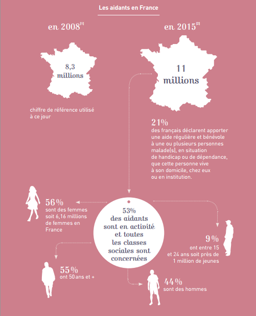 Les résultats du Baromètre des aidants 2015 de la Fondation April révèlent que la France compte aujourd’hui 11 millions d’aidants. Ce chiffe est plus élevé que le chiffre de référence sur la question soit celui de 8,3 millions d’aidants déterminé par l’enquête Handicap-Santé (enquête DREES / INSEE) datant de 2008.