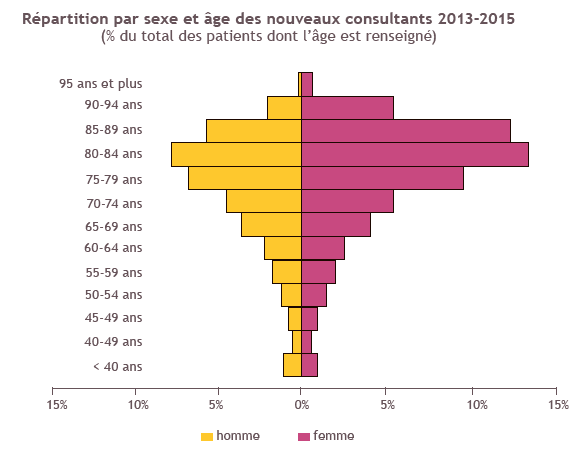 Au total, sur les trois années (2013, 2014 et 2015), près de 625 000 consultations ont été étudiées. Près de 300 000 personnes ont consulté pour la première fois pour des troubles de la mémoire et ont fait l’objet d’une analyse ; il en ressort que :