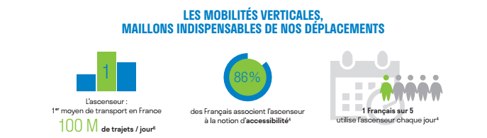 « Les solutions de mobilité verticale sont trop souvent oubliées. La France accuse un grave retard d’équipement sur ses voisins européens avec un taux inchangé depuis 30 ans. Il est de notre responsabilité d’accompagner la mobilité verticale et ses défis nouveaux en termes d’accessibilité, de maintien à domicile, d’intégration urbaine et de développement durable », précise Alain Meslier, Délégué général de la Fédération des Ascenseurs.