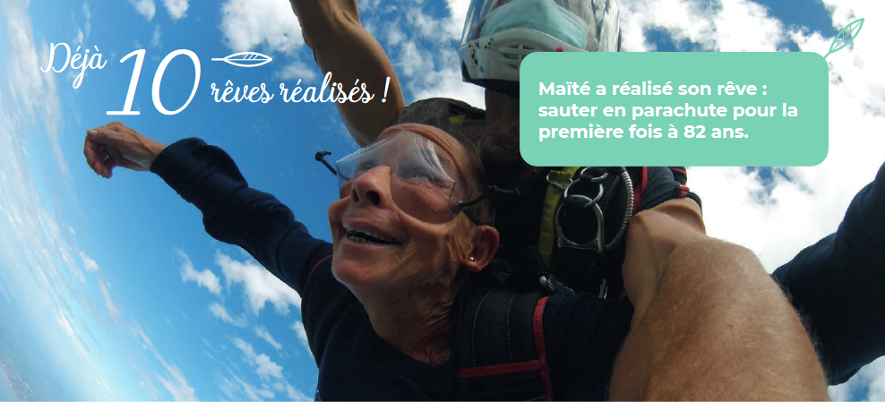Parmi les rêves déjà réalisés depuis trois ans : sauter en parachute à plus de 80 ans, survoler le Mont Blanc, rencontrer Thomas Pesquet ou encore approcher des gorilles seule au zoo.