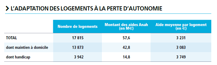 En 2016, 17 815 logements ont été adaptés à la perte d’autonomie (15 873 dans le cadre d’un maintien à domicile et 3 942 dans le cadre d’un handicap), selon les chiffres du bilan 2016 de l’Anah.