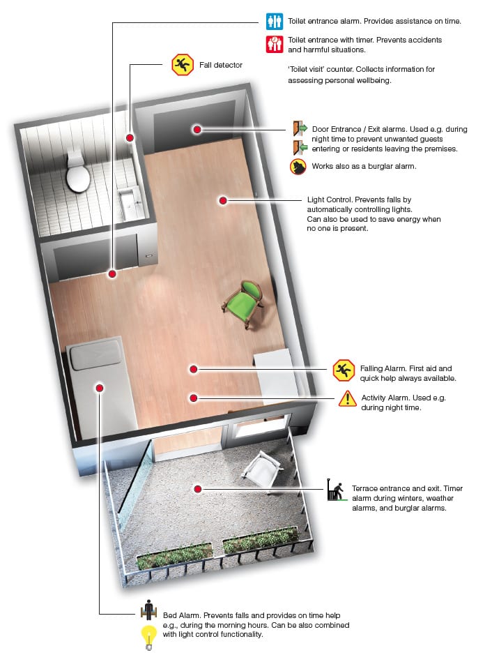 Hanne Jensen commente : « Les résidents se sentent beaucoup plus en sécurité en sachant qu’aucune chute ne pourra passer inaperçue. Les proches se sentent eux aussi rassurés ». Les capteurs du plancher peuvent également détecter chaque fois qu’un résident se rend aux toilettes ou se lève durant la nuit.