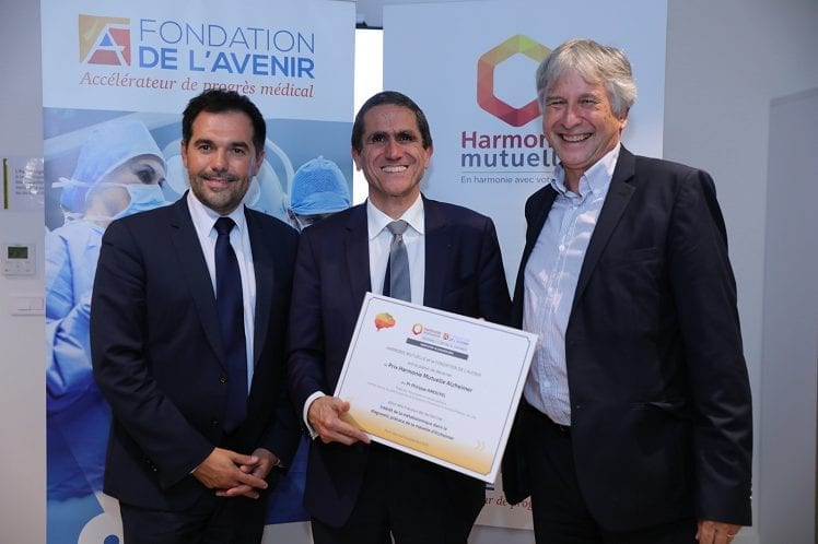 d’Harmonie Mutuelle, et Dominique Letourneau, Président du directoire de la Fondation de l’Avenir, ont remis le « Prix Harmonie Mutuelle Alzheimer » qui soutient financièrement les travaux d’un chercheur