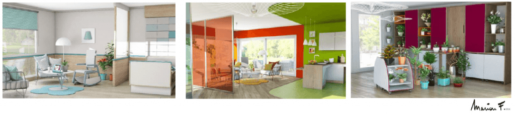 - La modularité des espaces, des produits et des services en s’adaptant aux différentes pathologies, à leur évolutivité dans le temps ainsi qu’aux goûts et envies des résidents