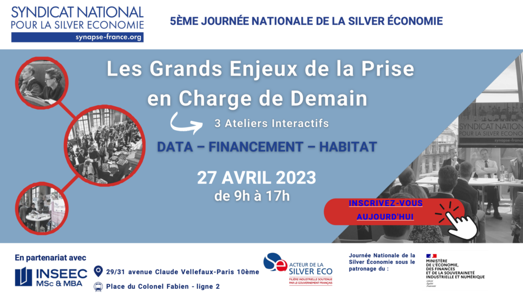 Le 27 avril 2023 se tiendra la journée nationale de la Silver Économie. Pour cette nouvelle édition dédiée à la transition démographique, le SYNAPSE a choisi pour thème : « Les grands enjeux de la prise en charge de demain : datas, financement, habitat ».