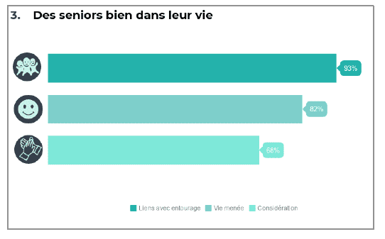 Aujourd’hui, les seniors se sentent senior notamment car ils peuvent bénéficier de services et d’activités adaptées à leur âge. Un chiffre que l’on rapproche aussi de l’épanouissement et de la considération qu’ils ont au quotidien.