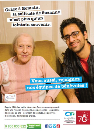 Depuis 70 ans, les petits frères des Pauvres accompagnent des personnes de plus de 50 ans en situation d’isolement, de précarité. Les bénévoles sont les maillons essentiels de cette chaîne de solidarité en s’impliquant tout au long de l’année. Ils agissent en équipe et s’investissent auprès des personnes qu’ils accompagnent.