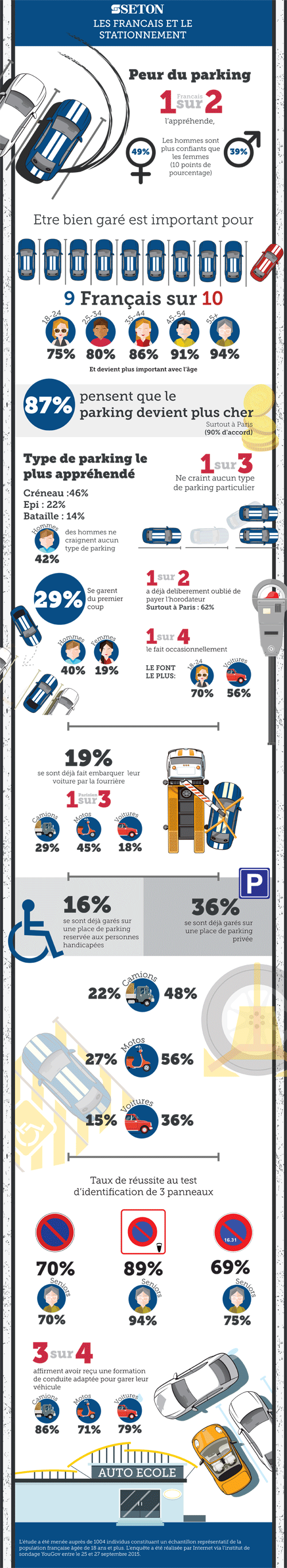 La société Seton, spécialisée dans l’équipement et signalétique de sécurité en entreprise en France, a réalisé, en collaboration avec l’institut de sondage YouGov, une enquête nationale sur les Français et le stationnement. Les sondés ont été interrogés et testés sur leurs connaissances relatives au stationnement.