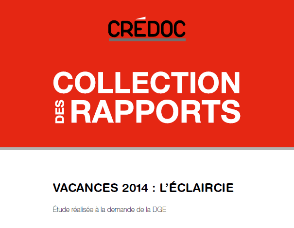 Une étude du CREDOC sur les français et les vacances a été réalisée à la demande de la DGE (Direction Générale des Entreprises, Ministère de l’Économie, du Redressement productif et du Numérique). Elle est intitulée « Vacances 2014 : l’éclaircie ».