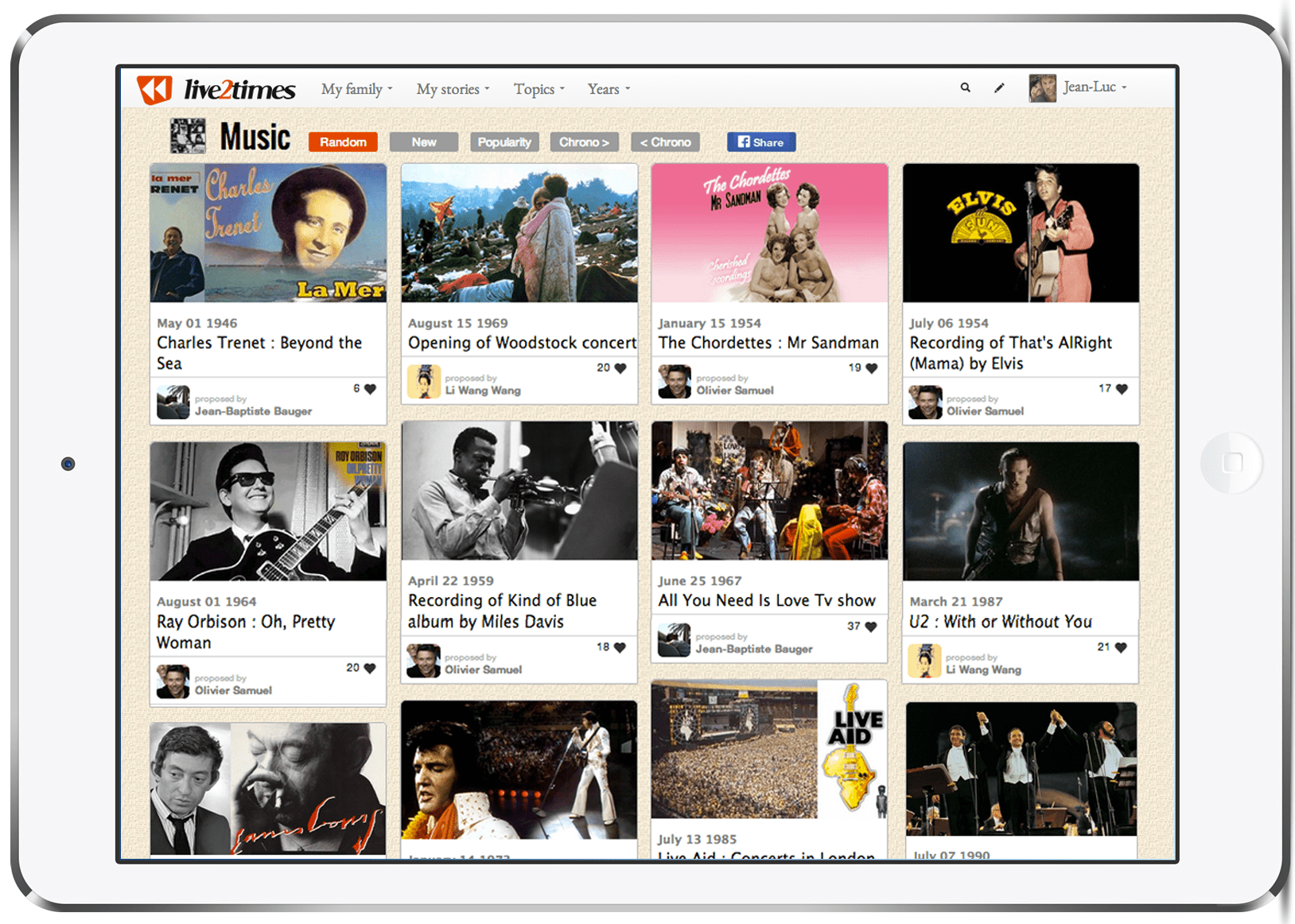 Live2times est aussi un réseau social qui permet d’entrer dans une vaste base de données multimédia dédiée à la culture populaire et aux évènements marquants.