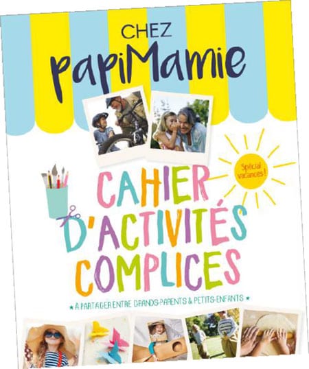 « Chez PapiMamie » est un cahier d’activités intergénérationnelles de 76 pages, permettant de réaliser des activités créatives et ludiques entre petits-enfants et grands-parents.