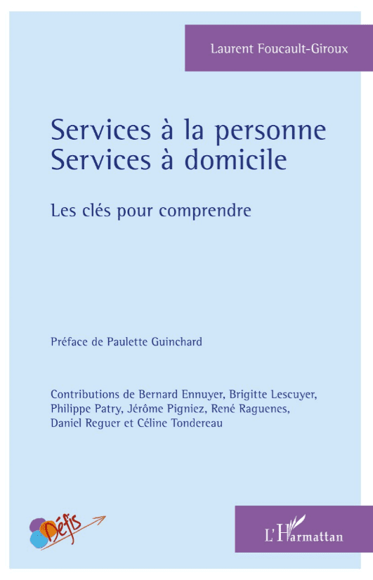 « Services à la personne – Services à domicile ; Les clés pour comprendre » est un ouvrage de Laurent Foucault-Giroux, réalisé grâce aux contributions de Paulette Guinchard (préface), Bernard Ennuyer, Brigitte Lescuyer, Philippe Patry, Jérôme Pigniez, René Raguenes, Daniel Reguer et Céline Tondereau.