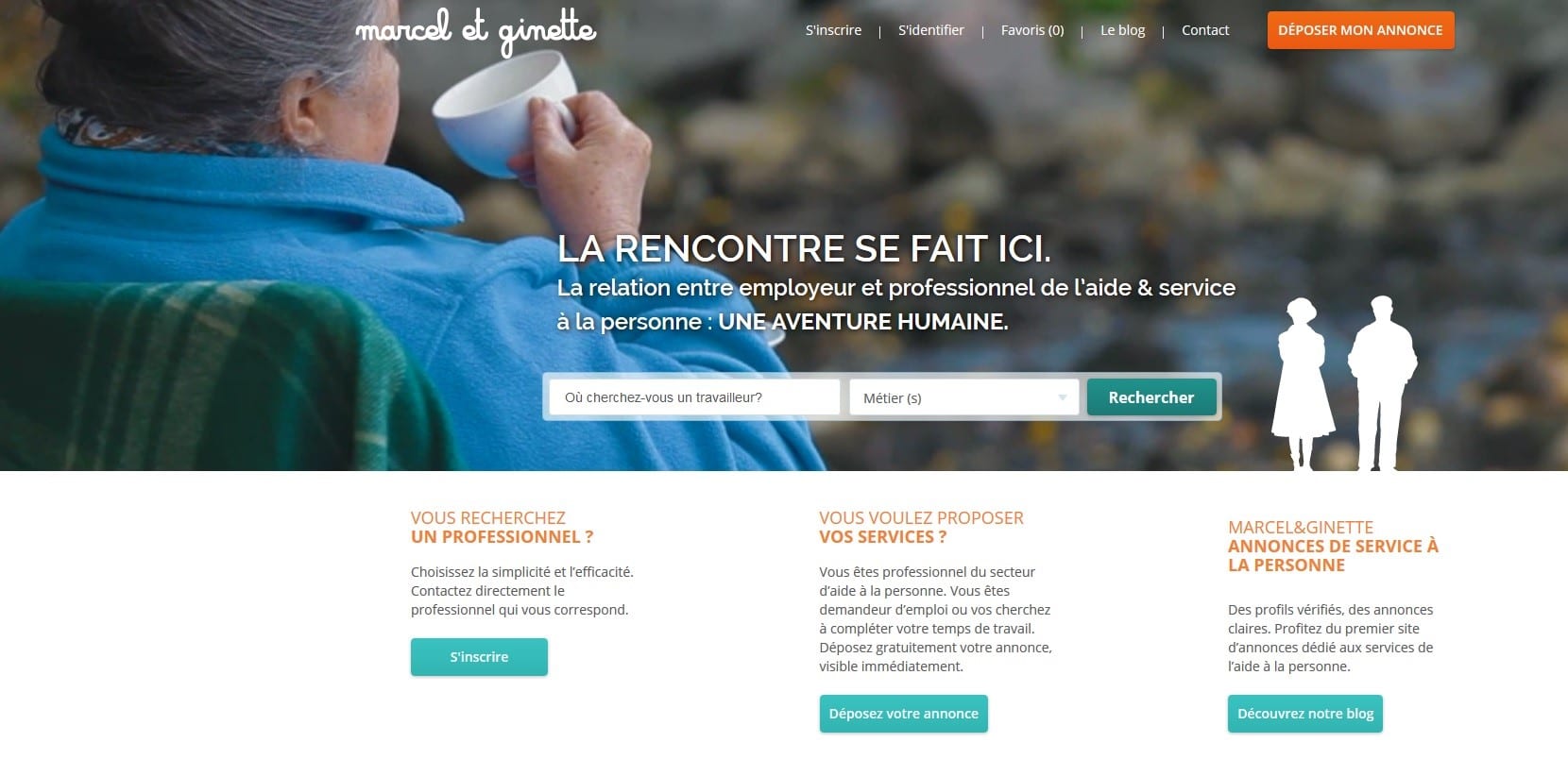 Marcel et Ginette est le premier site d’emploi spécifiquement dédié aux prestataires de services du secteur de l’aide aux personnes âgées ou handicapées. Il a pour ambition de proposer une solution de mise en relation entre employeurs et professionnels de l’aide à la personne.