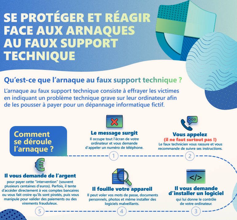- L’arnaque au faux support technique est la 3e menace cyber pour les particuliers selon Cybermalveillance.gouv.fr.