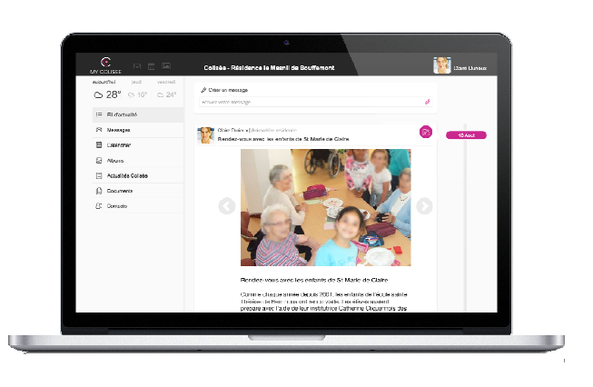 Les établissements peuvent partager, les menus, le calendrier des animations de la semaine, les dates d’anniversaires, les invitations festives et les documents pour les familles, créer des albums photos des animations et sorties réalisées avec les résidents (ateliers cuisine, spectacle au centre de loisirs, concerts, barbecue….).
