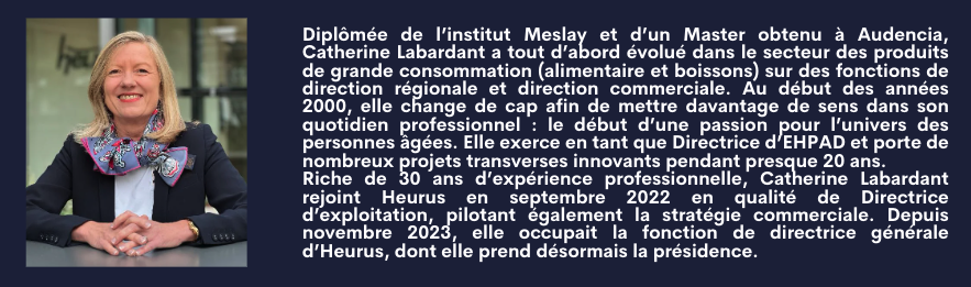 Nouvelle Présidente, nouvelle identité de marque … Heurus opère un virage multigénérationnel et redéfinit sa raison d’être à l’occasion de ses 10 ans. Catherine Labardant, nouvelle Présidente d’Heurus, riche de plus de 20 ans d’expérience au service du grand-âge, incarne ce renouveau.