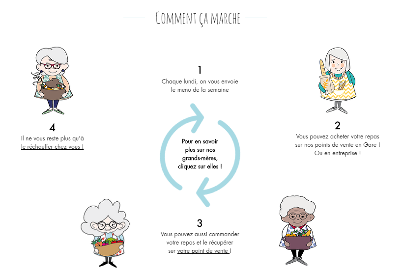 L’entreprise s’installe à la sortie des gares pour proposer aux actifs souvent pressés des bons petits plats gourmands et savoureux mijotés comme chez mamie. Leur ambition est de s’installer dans toutes les gares françaises puis de faire voyager sa marque en l’installant dans le monde entier.