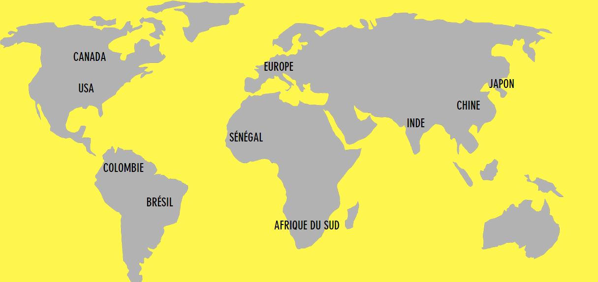 Oldyssey a choisi à la fois des pays où la transition démographique est bien amorcée, comme le Japon, le Canada et les États-Unis, très avancés en matière d’innovation en faveur des personnes âgées ; mais aussi des pays au défi d’une transition démographique accélérée, comme le Brésil, la Chine et le Sénégal.