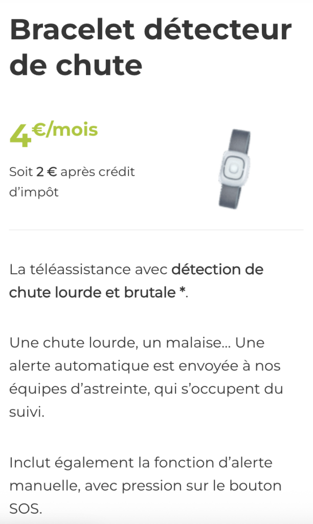 Bracelet de détection de chute lourde (en option) : 4 euros /mois