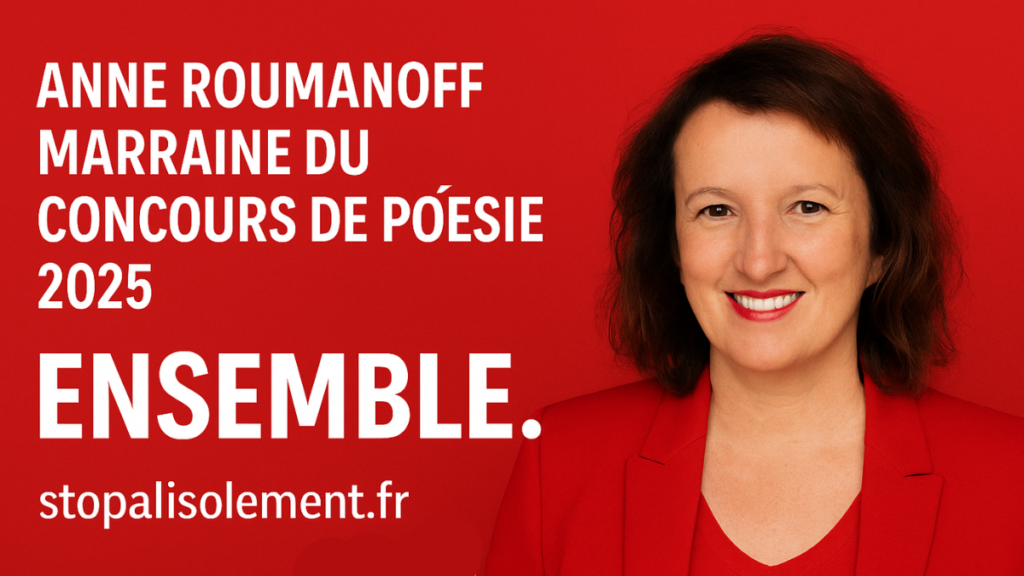 J’ai accepté avec joie d’être la marraine du 4e concours Ensemble.stopalisolement.fr, car je crois profondément au pouvoir des mots pour créer du lien. La poésie, comme l’humour, est un moyen d’expression qui nous touche tous et rassemble. Avec ce concours, nous luttons contre l’isolement en invitant chacun, quel que soit son âge ou sa situation, à partager un moment d’émotion, de création, et surtout de rencontre. Parce que la poésie est un pont entre les cœurs, il est temps, plus que jamais, d’écrire ENSEMBLE !