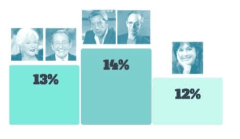 Line Renaud et Jean-Pierre Pernaut font leur retour dans le trio de tête et arrivent à égalité en deuxième position, devant Anny Duperey.