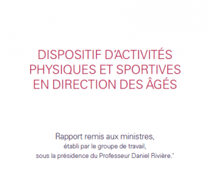 Toujours dans l’objectif de favoriser la prévention de la perte d’autonomie et de faire un état des lieux de la question de la pratique des ASP (activités physiques et sportives) des âgés : mesures et plans existants, initiatives locales ou régionales etc., le rapport rivière fait de nombreuses propositions.