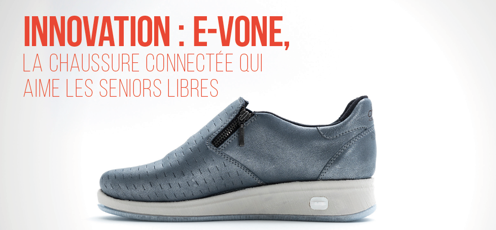 Nous avons imaginé et présenté E-Vone, la première chaussure connectée pour les personnes âgées en perte d’autonomie.