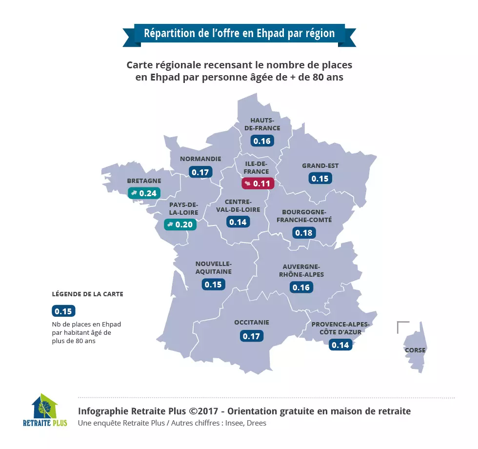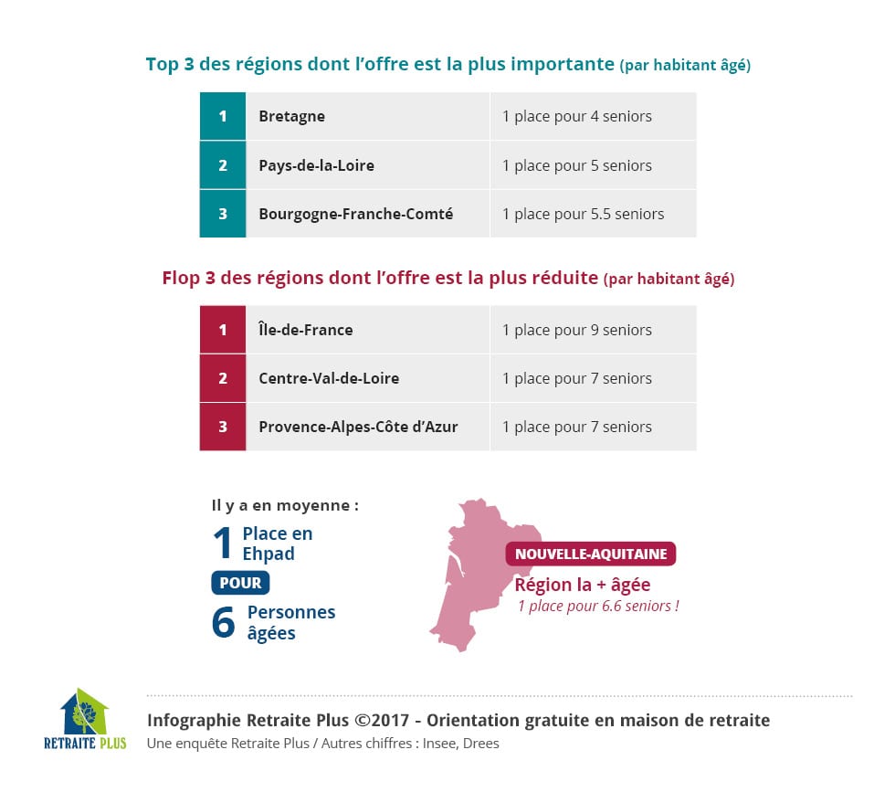 Interpellé par cette situation, l’organisme Retraite Plus a lancé une étude visant à évaluer l’offre réelle de lits en EHPAD par rapport à la population en âge d’entrer en établissement (population âgée de plus de 80 ans), selon les régions.