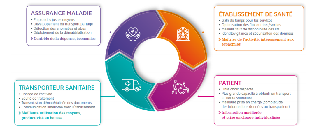 Cette indépendance offre des avantages pour chacun d’eux (Assurance Maladie, Etablissements de santé, transporteurs sanitaires et patient) :