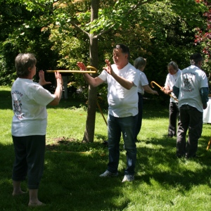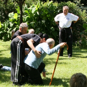 Vieillir est dans la majorité des cas synonyme de s’enraidir. La pratique des différentes ripostes CDJL (horizontales, verticales, diagonales, tournoyantes, hélice etc.) constitue une véritable rééducation fonctionnelle avec assouplissements des structures musculaires des épaules, des poignets et du rachis lombaire. La canne forme joue ici un rôle majeur de souplesse articulaire.