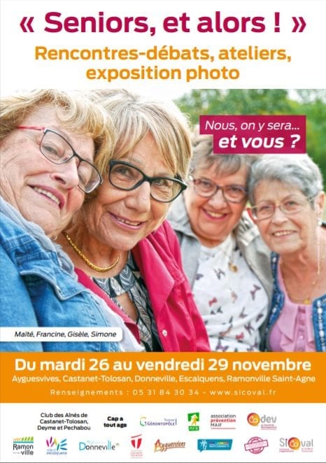 C’est pour informer le grand public sur les aides et les services existants, favoriser l’émergence d’un réseau d’acteurs de la gérontologie, diffuser les bonnes pratiques en matière de prévention et enfin, contribuer à changer le regard que nous portons tous sur la vieillesse, que le Sicoval a créé en 2017, « Senior, et alors ! » Programmé cette année du mardi 26 au vendredi 29 novembre, l’événement propose durant toute la semaine, un programme complet de rencontres, conférences, ateliers, exposition photos… ouvert à tous.