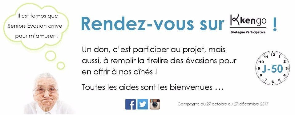 Pour pouvoir se développer, Seniors Evasion a récemment lancé sa campagne de financement participatif sur Kengo, laquelle a pour objectif d’offrir des évasions aux seniors, de communiquer autour du projet, de créer un site Internet et de sillonner les routes à la rencontre des aînés.