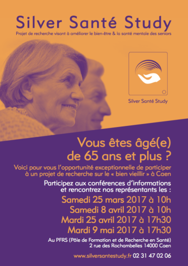 Si vous êtes intéressé pour participer à cette étude, les prochaines conférences d’information à destination des seniors intéressés sont prévues au PFRS de Caen :