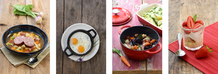 Au menu, plus de 250 recettes de plats ancrés dans la « cuisine de famille » pour faire renaître des émotions d’autrefois : le souper d’antan pour revisiter le repas du soir, les oeufs au plat servis dans des caquelons, le boeuf bourguignon à partager en cocotte, des desserts gourmands en toute simplicité…