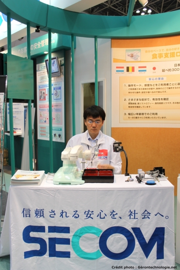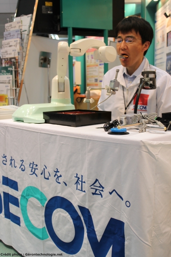 Le fabricant SECOM a présenté son système d’aide au repas MY SPOON pour personnes handicapées à l’occasion du salon HCR de Tokyo en 2012.