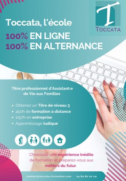Avec un cursus d’une année en alternance, Toccata permet d’obtenir le titre professionnel d’Assistant de Vie aux Familles(ADVF) grâce à une formation en alliant pratique sur le terrain et apprentissage distanciel par le biais d’une pédagogie innovante et inédite : application mobile, micro-learning, apprentissage par le jeu.