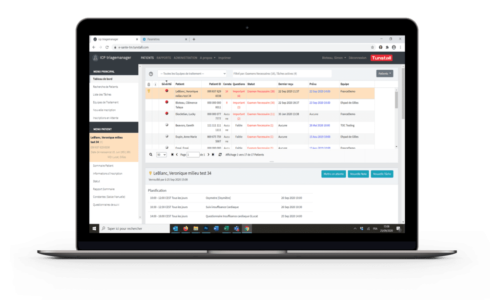 Les solutions et services de santé connectée Tunstall aident considérablement les personnels soignants en proposant une gestion simplifiée de la préparation et du suivi, du parcours de soin patient pré/post hospitalisation.