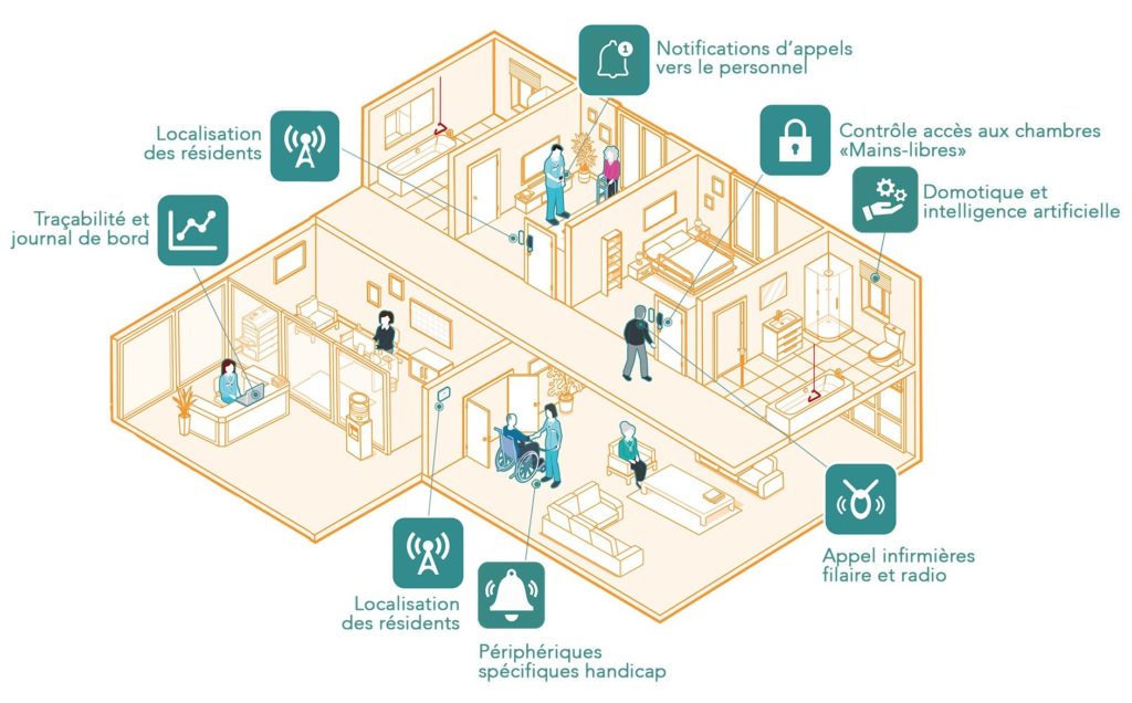 Tunstall propose les deux : un système d’appel infirmières et une offre de téléassistance pour tous les résidents.