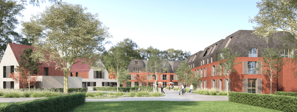 Développée par Nacarat et conçue par le cabinet d’architecture Atlante, la résidence du Domaine des Diamants Blancs a été pensée pour s’intégrer dans son environnement paysager. Patrice De Williencourt, architecte du projet, s’est inspiré de l’ambiance du site avec ses grandes villas et maisons individuelles, pour proposer un bâtiment collectif en R+3 sous la forme de 5 grandes villas reliées entre elles, associé aux 28 maisons. Cette association se traduit par une emprise foncière plus importante et par la création de nombreux espaces de promenade, végétalisés, qui participent au bien-être des résidents. Une attention particulière a également était portée au choix des matériaux. Tuiles, enduits, briques rouges et ardoises feront ainsi écho au tissu urbain voisin, tout en étant retravaillés pour apporter à la résidence une expression plus contemporaine et épurée.