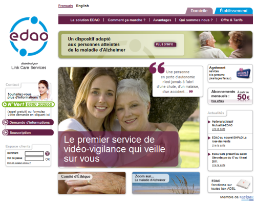 Ce service de vidéovigilance veille sur les personnes âgées en perte d’autonomie, la solution EDAO peut aussi bien être installée à domicile dans le cadre du maintien à domicile des personnes en perte d’autonomie, qu’en maisons de retraite.