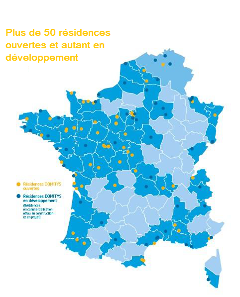 Avec l’ouverture de sa 50ème résidence services, le groupe Domitys accueille désormais plus de 5000 seniors au sein de ses résidences réparties dans toute la France. Domitys annonce par ailleurs travailler sur plus de 60 projets en commercialisation ou en développement, dont une dizaine à l’étranger. A l’horizon 2020, Domitys prévoit de proposer l’accès à un parc de plus 100 Résidences pour permettre aux seniors « de trouver facilement une résidence Domitys à proximité de chez eux ».