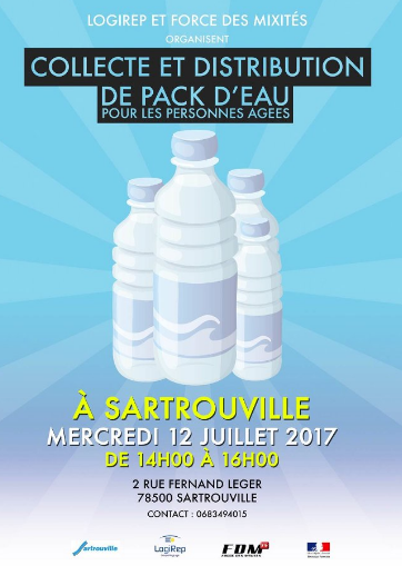 Mercredi 13 juillet 2017, le bailleur LogiRep et l’association Force des Mixités (FDM) ont collaboré afin d’organiser une distribution gratuite de packs d’eau pour les personnes âgées et personnes à mobilité réduite, au sein de la Résidence les Reflets, à Sartrouville (78). Le but : favoriser les liens intergénérationnels et rompre l’isolement des aînés.