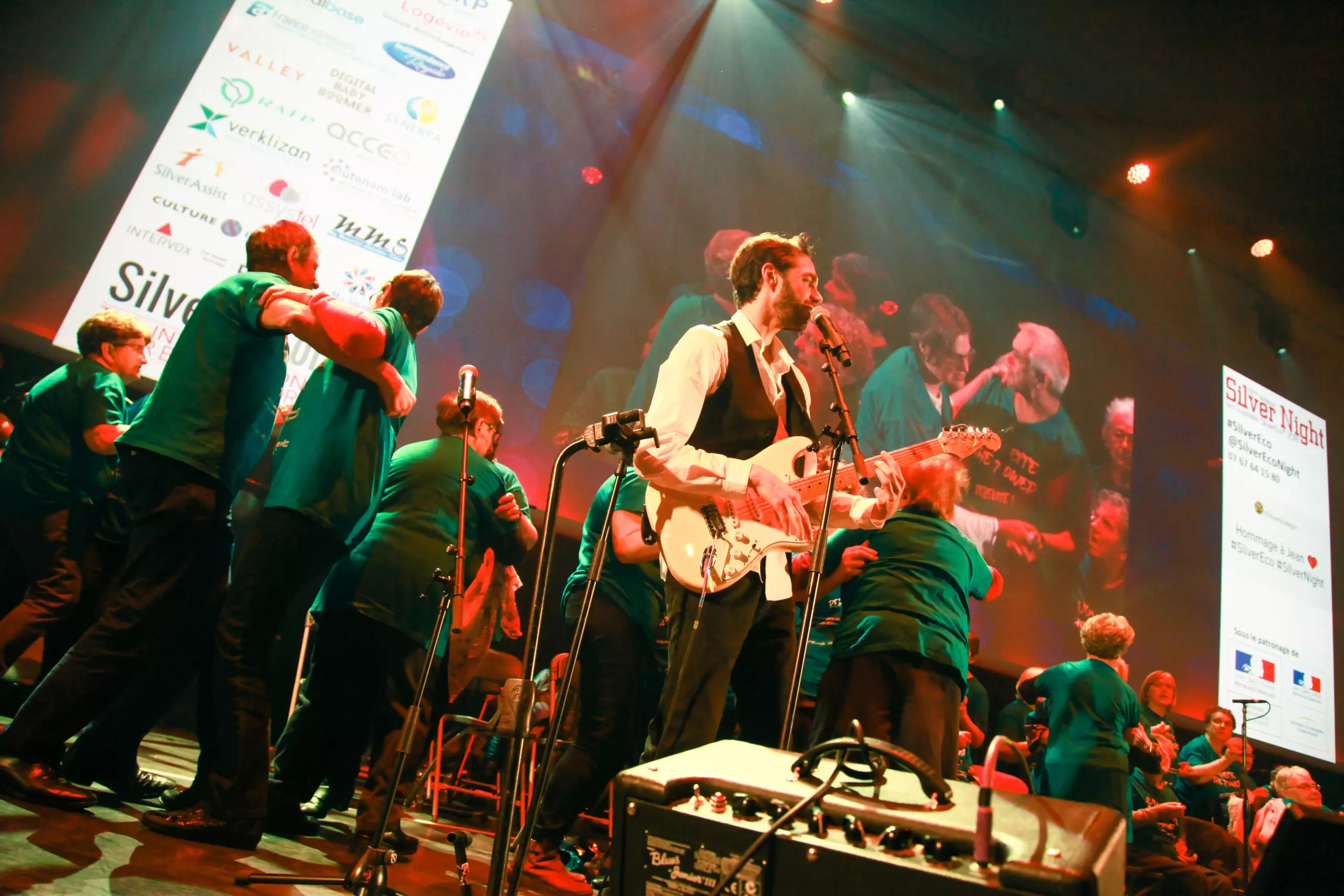 A l’occasion des 10 ans des Trophées SilverNight organisés au Grand REX, l’équipe de SilverEco.org, touchée par cette étonnante chorale, a décidé de lui laisser la scène le temps de réinterpréter ses plus beaux succès. L’occasion également pour Jérôme Pigniez, organisateur de SilverNight et Président de SilverEco.org / ON-MEDIO, de récompenser l’association Au Foin de la rue pour le travail effectué auprès des personnes âgées.