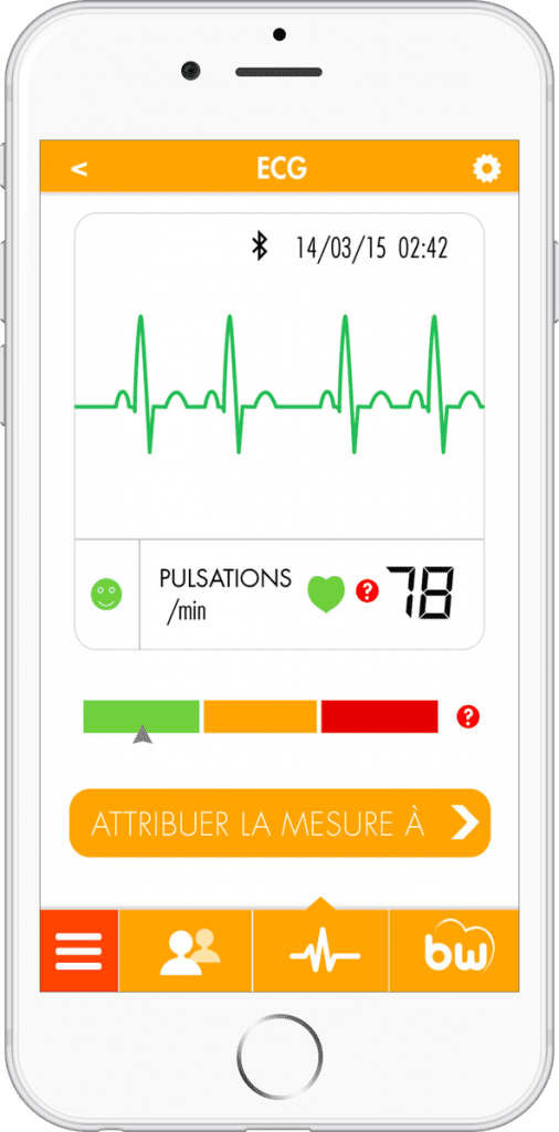 Les mesures réalisées par MyECG® sont transférées au médecin par l’intermédiaire du smartphone ou de la tablette. Ce dernier reçoit un document PDF avec un tracé, sur du papier millimétré, de la courbe du rythme cardiaque de son patient, et peut l’interpréter de façon traditionnelle.