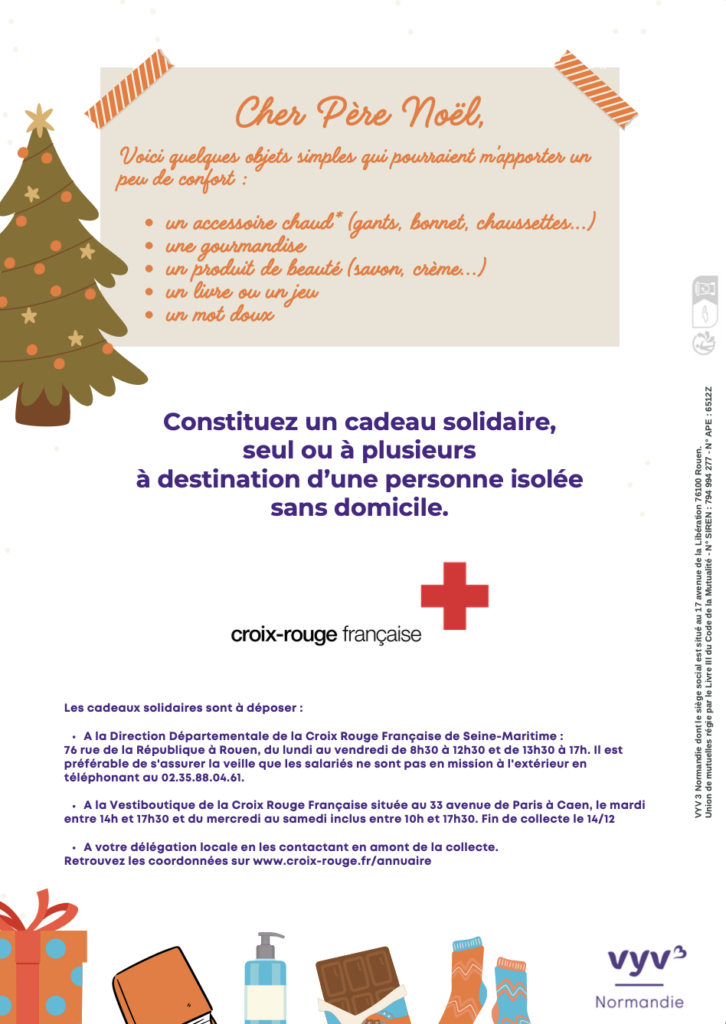 Noël est un moment de partage, mais il peut aussi accentuer le sentiment d’isolement pour certaines personnes âgées. VYV 3 Normandie souhaite transformer cette période potentiellement difficile en un instant de bonheur. Avec le soutien de ses collaborateurs, de ses clients et des habitants des maisons voisines, l’organisme VYV invite chacun à participer à une collecte solidaire.