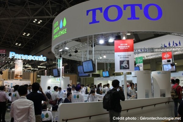 La large gamme de TOTO, fabricant nippon de sanitaires, était en exposée au salon HCR 2012 de Tokyo, ainsi que diverses innovations pour faciliter la toilette, à domicile ou en EHPAD.